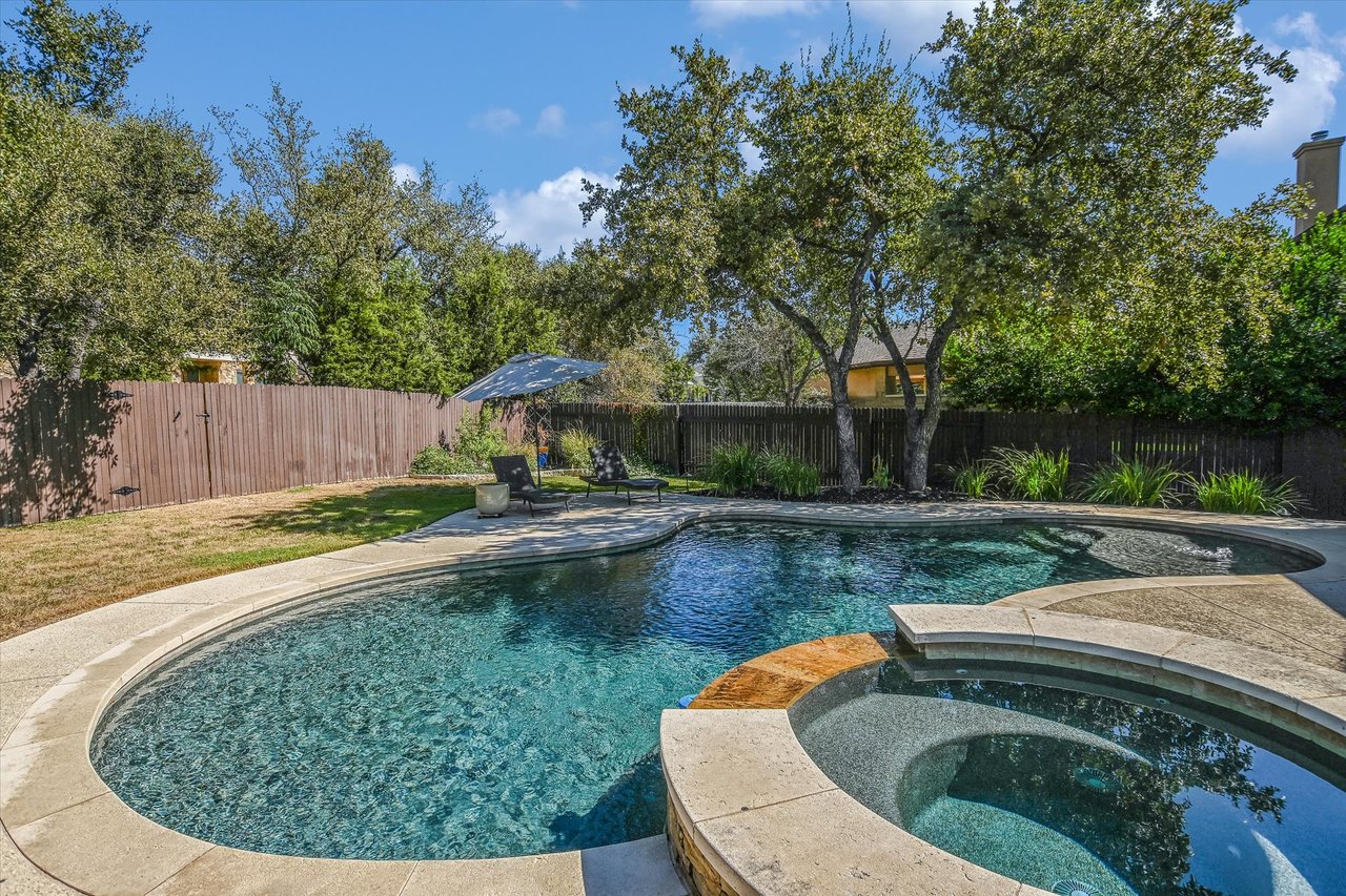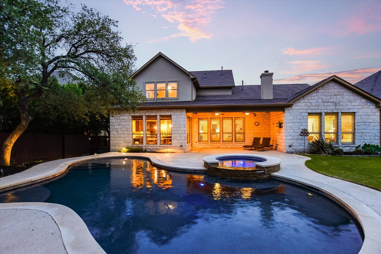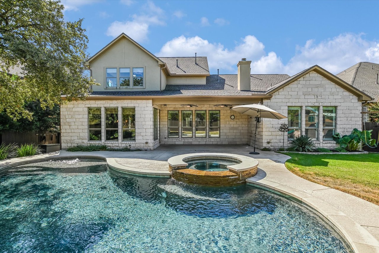 Charming home with a pool in one of Cedar Park’s most popular neighborhoods, The Ranch at Brushy Creek. With 5 spacious bedrooms & multiple common areas, this home offers ample space for everyone. This home has all the little extras such as cathedral entry foyer ceilings, honey oak wood flooring, & extended storage in many locations throughout the home. A recent new roof adds to your peace of mind. A downstairs Guest Room with wood floors could pose as an Office or additional TV room. The Family Room is full of bright windows & is open to the Kitchen. The Kitchen has an eat-in island plus a Breakfast Area with windows showcasing light from several different directions. There is the beauty of stainless appliances & the convenience of gas cooking. Custom cabinetry extends the full length of the room providing storage. For more formal entertaining, there is a Butler’s Pantry & separate Dining Room. The warm wood flooring extends into the downstairs Primary Suite where you’ll find vaulted ceilings & a must see custom closet. Upstairs, a spacious Game Room provides a second living area with 3 additional bedrooms. The covered back porch has multiple ceiling fans & overlooks the pool. Plenty of backyard space for people & pets! The Ranch at Brushy Creek is renowned for its top-rated Round Rock schools & abundant community amenities. Owners can enjoy the Jr Olympic Pool, pavilion gatherings, playscape adventures, & scenic bike rides or hikes on the neighborhood trails. Nearby Brushy Creek Lake Park offers 90 acres of parkland, including a fishing dock & opportunities for kayaking & fishing. Convenience abounds with a variety of shopping options, from the nearby Lakeline Mall to Round Rock Outlets, as well as numerous grocery stores to meet your everyday needs. Embrace the vibrant lifestyle & abundant recreational opportunities that await in this charming home at The Ranch at Brushy Creek.