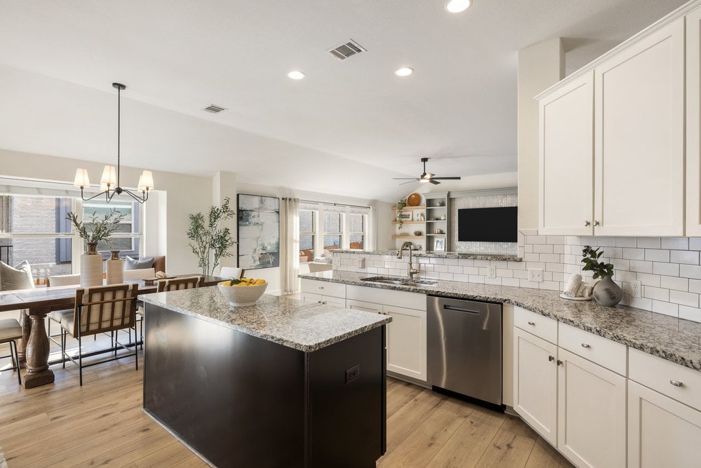 Welcome to your dream home in the heart of the amenity-rich Sweetwater community, perfectly situated on a serene cul-de-sac near the pocket park and scenic trails. This meticulously maintained single-story residence features three spacious bedrooms, two full bathrooms, and a versatile flex room that can effortlessly serve as a fourth bedroom, office, or game room. The home is freshly painted and showcases newly installed, low maintenance CoreTec flooring and plush carpeting, ensuring it's completely move-in ready. The living area features a stunning custom-built entertainment center with soft-close drawers and doors, serving as a striking focal point. The spacious kitchen is a chef's delight, highlighted by crisp white cabinetry that offers ample storage and counter space. Both secondary bedrooms have custom closet systems with soft-close drawers. Step outside to an expansive backyard where the possibilities are endless. This large, flat yard is the ideal canvas for your dream pool or outdoor oasis. The Sweetwater community features 2 resort style pools, a neighborhood only gym, basketball, pickleball and sand volleyball courts, a putting green, dog park and miles of hiking and biking trails that are easily accessed from the home.