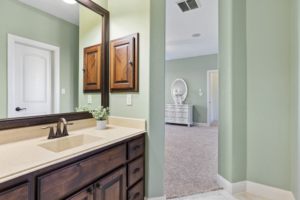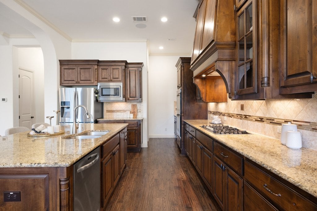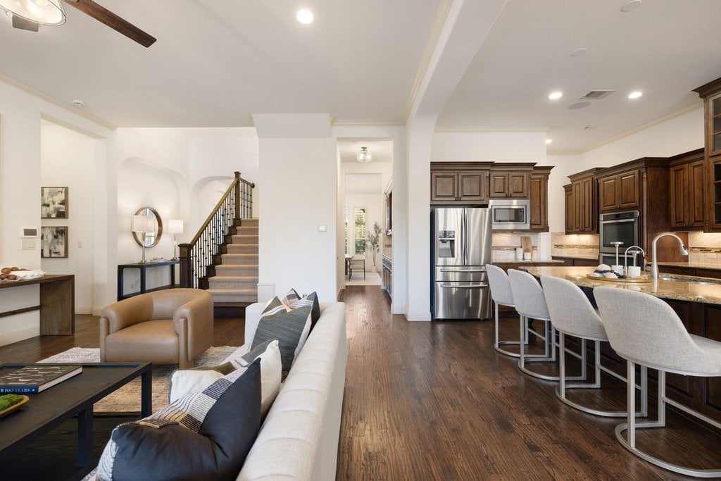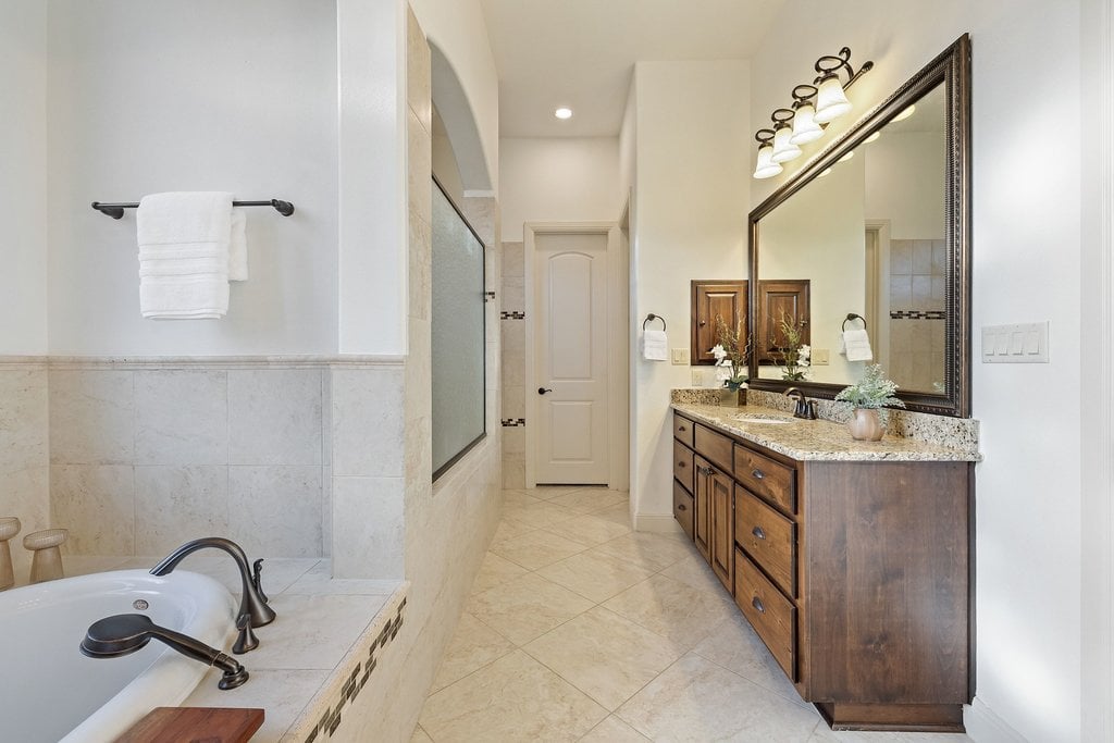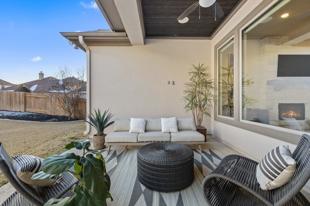 Nestled within the gated enclave of Davenport Summit in Sweetwater, this stunning Drees Custom Home combines timeless elegance with modern comfort. Spanning an impressive 4,602 square feet on over 1/3 of an acre, this meticulously maintained home offers space and privacy. Inside, you'll find 5 bedrooms, 5 bathrooms, a dedicated office, a media room, a game room, and a roomy 3-car garage. From the moment you step through the striking Cantera metal door, you're greeted by freshly painted walls, rich solid hardwood flooring, and wood plantation shutters that add warmth and sophistication to every corner. The chef-inspired kitchen will elevate your culinary adventures, boasting a six-burner KitchenAid cooktop, a generous center island, and an abundance of high-end cabinetry, complete with oversized pot-and-pan drawers. A butler’s area and a walk-in pantry ensure everything has its place, making both cooking and entertaining a breeze. The main level is thoughtfully designed with a spacious primary suite and a private guest ensuite, while upstairs offers three additional bedrooms, a media room, and a game room outfitted with a wet bar—perfect for hosting friends and family. Step outside to discover a backyard oasis with endless potential. With no steps leading to the yard and plenty of room to add a pool, this space is ready to be transformed into your personal retreat. Located in the amenity-rich Sweetwater community where residents enjoy two beautiful resort style pools, a community only gym, pickleball, sand volleyball and basketball courts, a dog park, numerous pocket parks throughout, miles of hiking and biking trails and community sponsored events and activities. Easy access to the lake, airport and downtown. Located in acclaimed Lake Travis ISD.