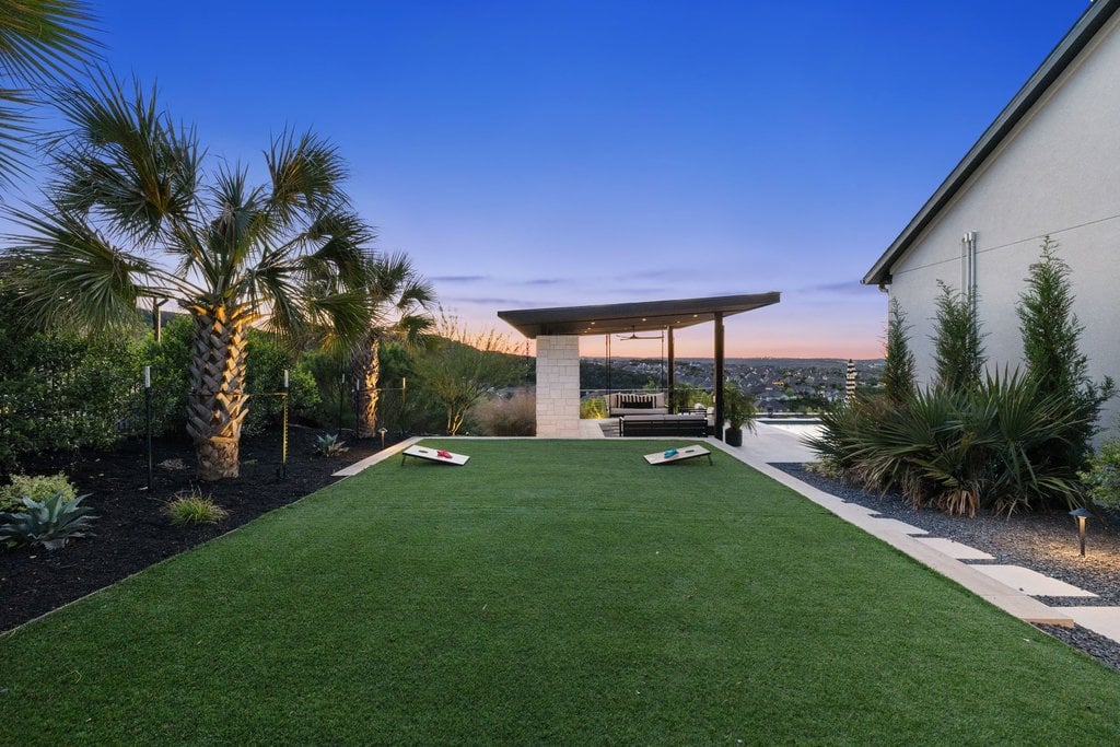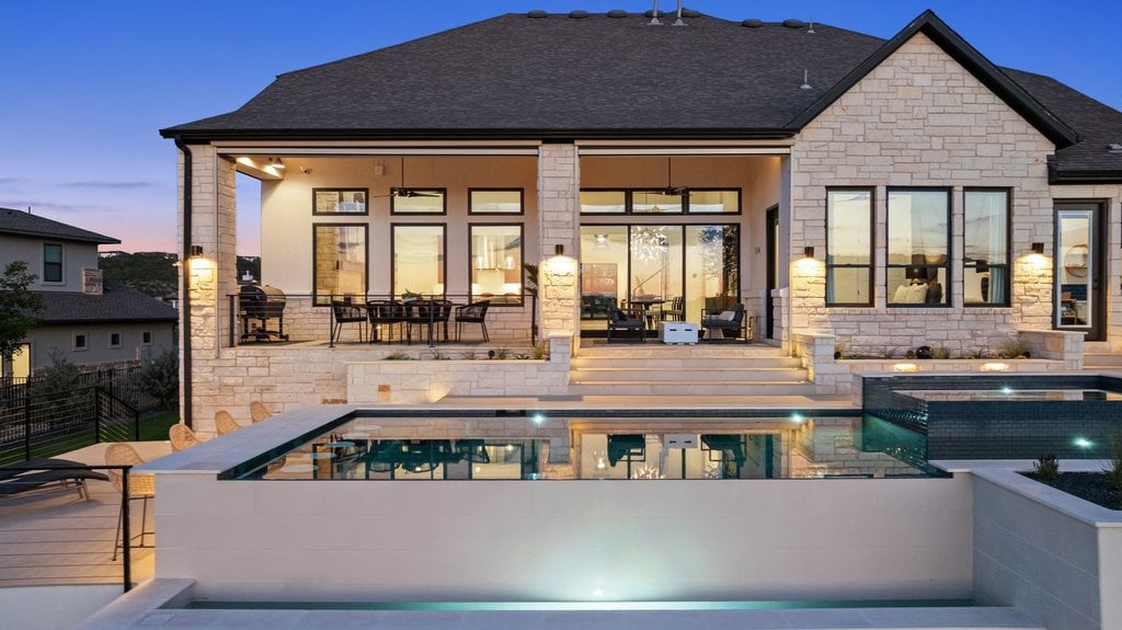 *Pool/spa/deck rebuilt in 2025/Make sure to see the Features list* Sweeping hill country views and mesmerizing Texas sunsets await in this stunning hill country retreat where designer finishing touches are found throughout. Featuring a newly built backyard oasis, almost 4900 square feet of greenbelt living space and located in the desirable gated enclave of Davenport Summit this beauty is a rare find. Step through the elegant Cantera steel door into a light-filled sanctuary where soaring ceilings and panoramic windows invite the outdoors in. The private primary suite is a true retreat, complete with direct access to the pool, dual custom-built closets and a spa-inspired bathroom. Guests will adore the in-law suite, which includes its own attached den and luxe finishes. A secluded office, outfitted with a built-in desk and shelving, makes working from home a pleasure. Upstairs, you’ll find two spacious bedrooms, each with its own bath, alongside a versatile game room and a flex space perfect for a media room, gym or whatever your lifestyle demands. Kids will delight in the custom-designed fort, adding a touch of whimsy to this exquisite home. At the heart of the home lies the Chef’s kitchen—a culinary dream featuring a 6-burner cooktop, built-in refrigerator, oversized quartz island, beverage fridge and a generous butler’s pantry with abundant storage. Entertaining flows effortlessly with an open-concept design that seamlessly connects the indoors to the outdoors via expansive sliders and automated shades. The wet bar, complete with an ice maker, beverage fridge and sink, ensures hosting is always a breeze. Outside, the backyard oasis is nothing short of spectacular, complete with a dedicated pool bath. Unwind on the hanging daybed under the pavilion, gather around the cozy gas fireplace, or take a refreshing dip in the sleek infinity pool and spa. Every detail of this stunner has been curated for relaxation, enjoyment and entertaining.