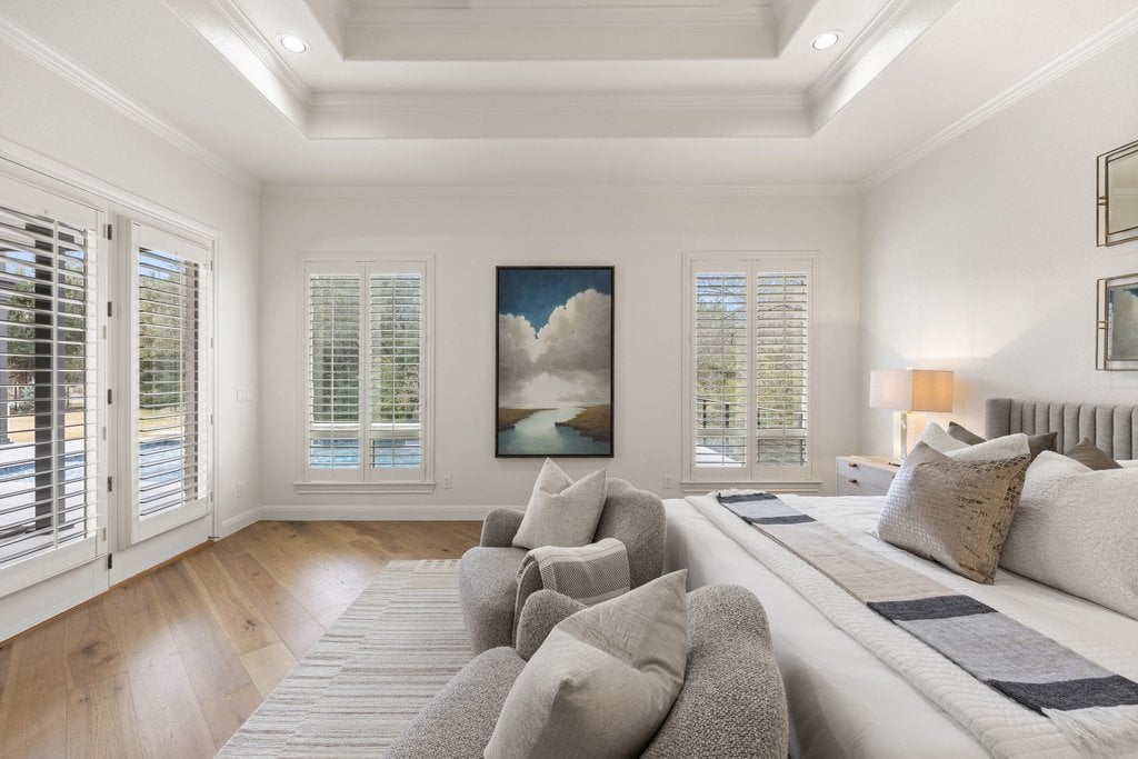 Welcome to your new home in the Foothills of Barton Creek, a gated pocket neighborhood minutes from 3 Barton Creek golf courses, Omni Barton Creek resort, & exemplary private schools. This 5 Bedroom, 5 full Bathroom home has 4587 SF (mostly downstairs) on an acre lot with a dedicated home office & game room. The house is set back from the street with a driveway that leads to a 3-car garage with an added parking circle. The driveway was modified from single lane to double lane allowing plenty of room for guest parking with the ability to maneuver entrance/exit. The backyard is fully fenced with double gates on either side, as well as a back perimeter gate. Over $40K was spent on landscape improvements including Cherry Laurel & Arizona Cypress trees & Zoysia grass. A 12,000 gallon swimming pool by Cody Pools was added in 2025 with fountains, bubblers on a beach ledge, Pebble Tech finish & an inline cleaning system (no unsightly Polaris). The large backyard has plenty of room for people & pets with the rear section preserving the natural beauty of the hill country greenbelt. Step inside through the double front door and a wall of windows are visible from the living room beyond the entrance foyer. No neighboring houses are visible from all of the back facing windows, just the pool and trees, feel free to keep the motorized shades open. Warm plank hardwood flooring combined with the sunlight creates a bright & open living room with tall ceilings and a stone gas log fireplace. The kitchen nearby has an adjoining dining room with another gas log fireplace and more windows with views of treetops. The kitchen is inviting with a center island as well as separate counter seating on a Quartz waterfall counter. Thermador appliances & herringbone marble backsplash are nice touches. A large pantry is a must, as well as a sizable laundry room with a second refrigerator, catering counter & sink. Near the kitchen is a wet bar with copper sink that leads to a barn door enclosing the office. The office has a second hidden door off the entry foyer which appears to be an art wall. Keep the door open or closed, you choose. This room with hardwood floors could also multi-purpose as a formal dining room if you prefer. The primary suite is downstairs, along with two additional bedrooms. One bedroom has an ensuite bathroom while the other bedroom could be used as another living room/TV room. The primary bedroom is sizable with tray ceilings & many bright windows. The primary bathroom has a dual-head shower as well as a soaking tub with a closet that seems to never end. Upstairs are two more bedrooms with ensuite baths, and a game room/living room with an adjoining balcony. This home offers many flexible multi-use spaces that allow you to customize your living experience. The large lots in the Foothills allow you to enjoy neighbors but not too close! Owner/Agent